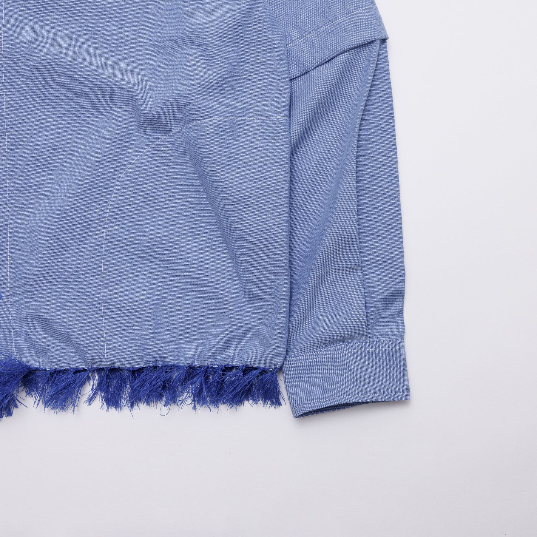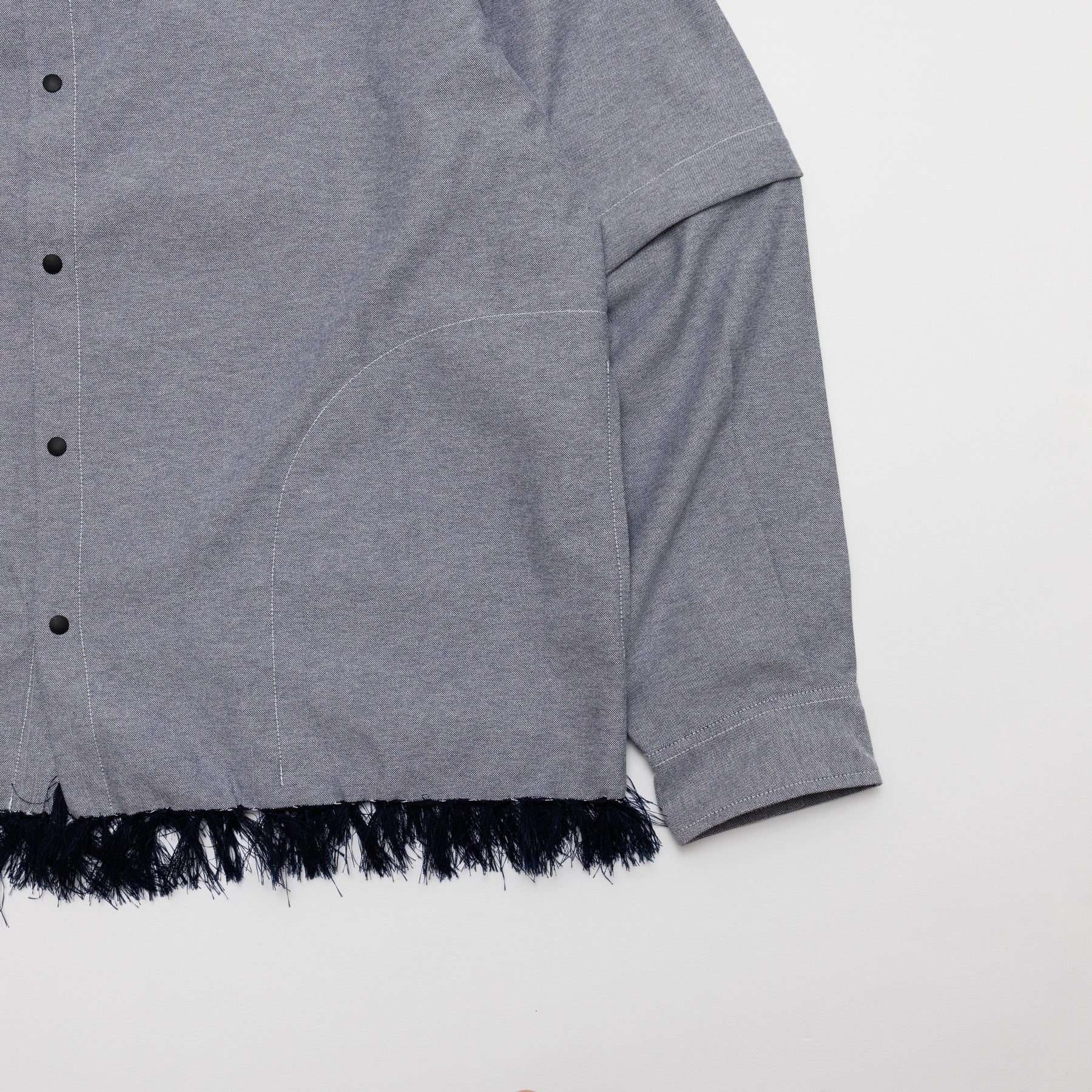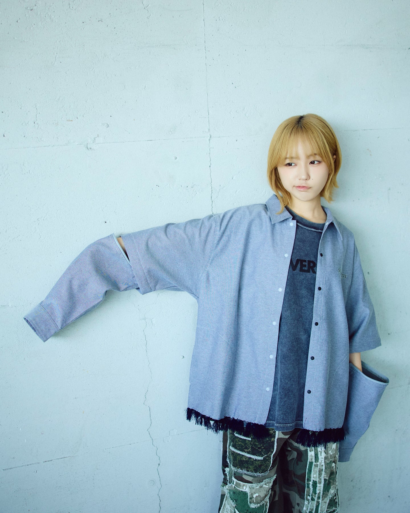 クラシカルな表情:オックスシャツをデザインベースに、半袖にもなる袖ドッキング仕様へアレンジ