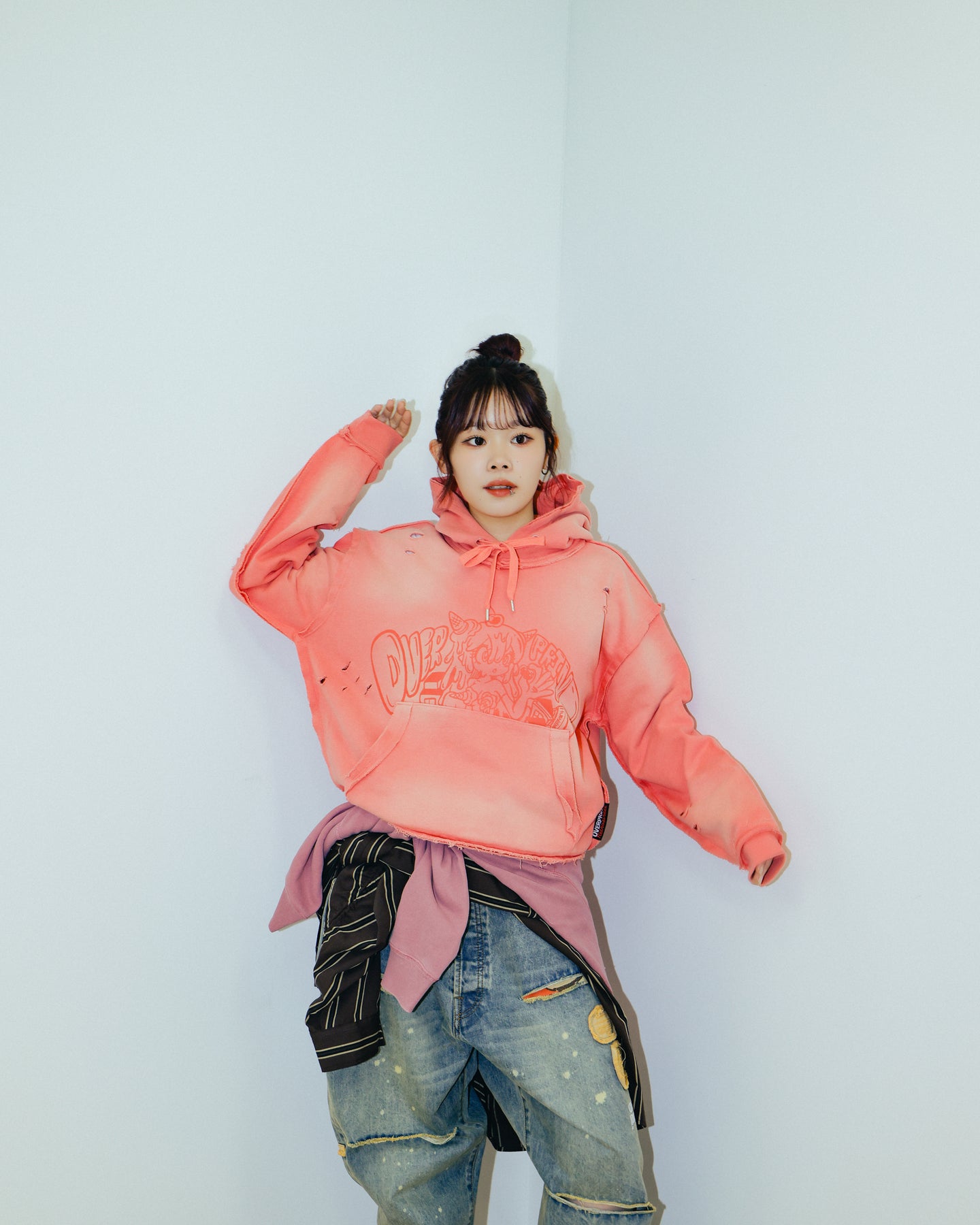 生地にアタリやクラッシュ加工を加えたユーズド感あふれる1枚illustration : 3saki