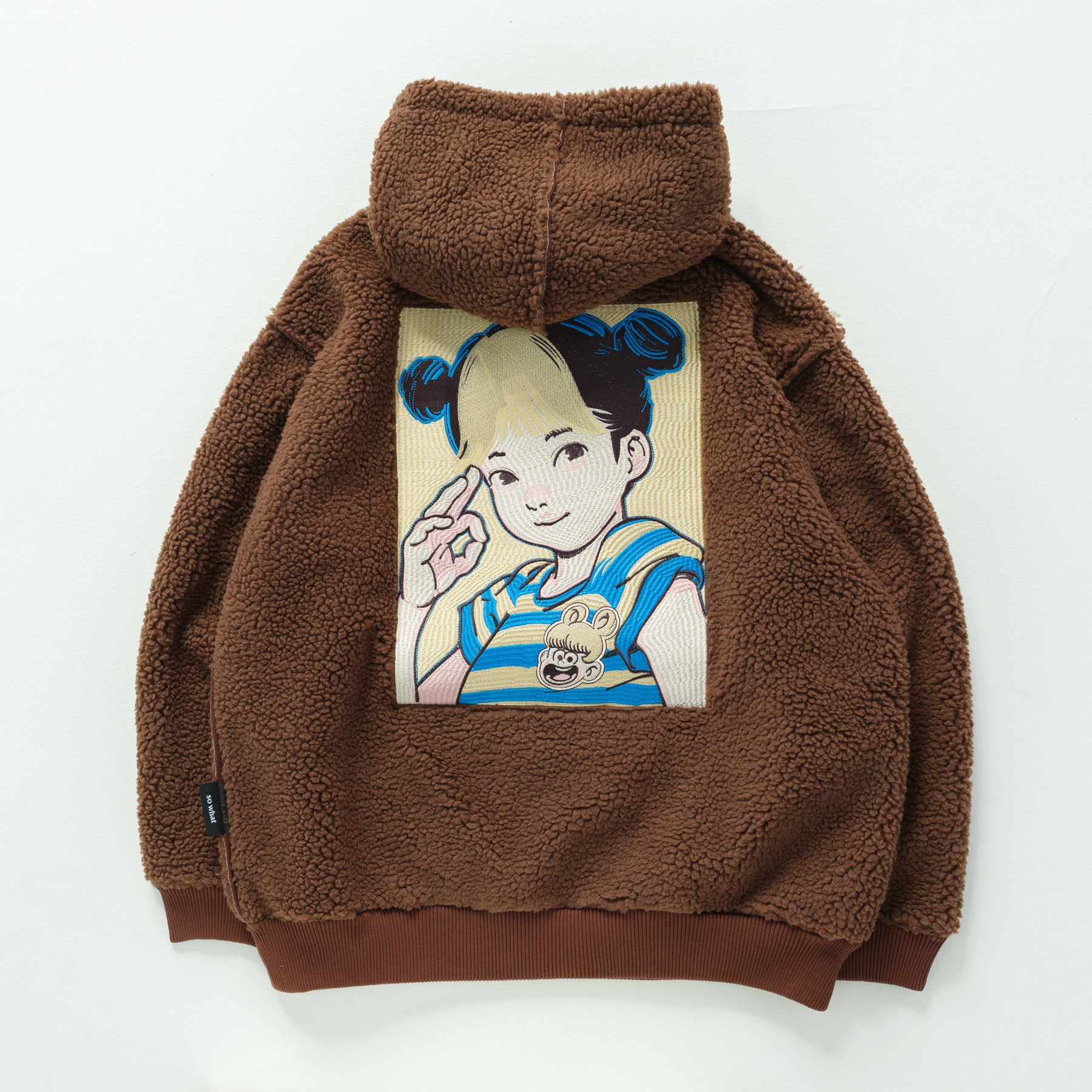 ボア生地の裏面にフリース生地をボンディング(接着)させたover printオリジナル生地を採用した、防寒性に優れた1枚