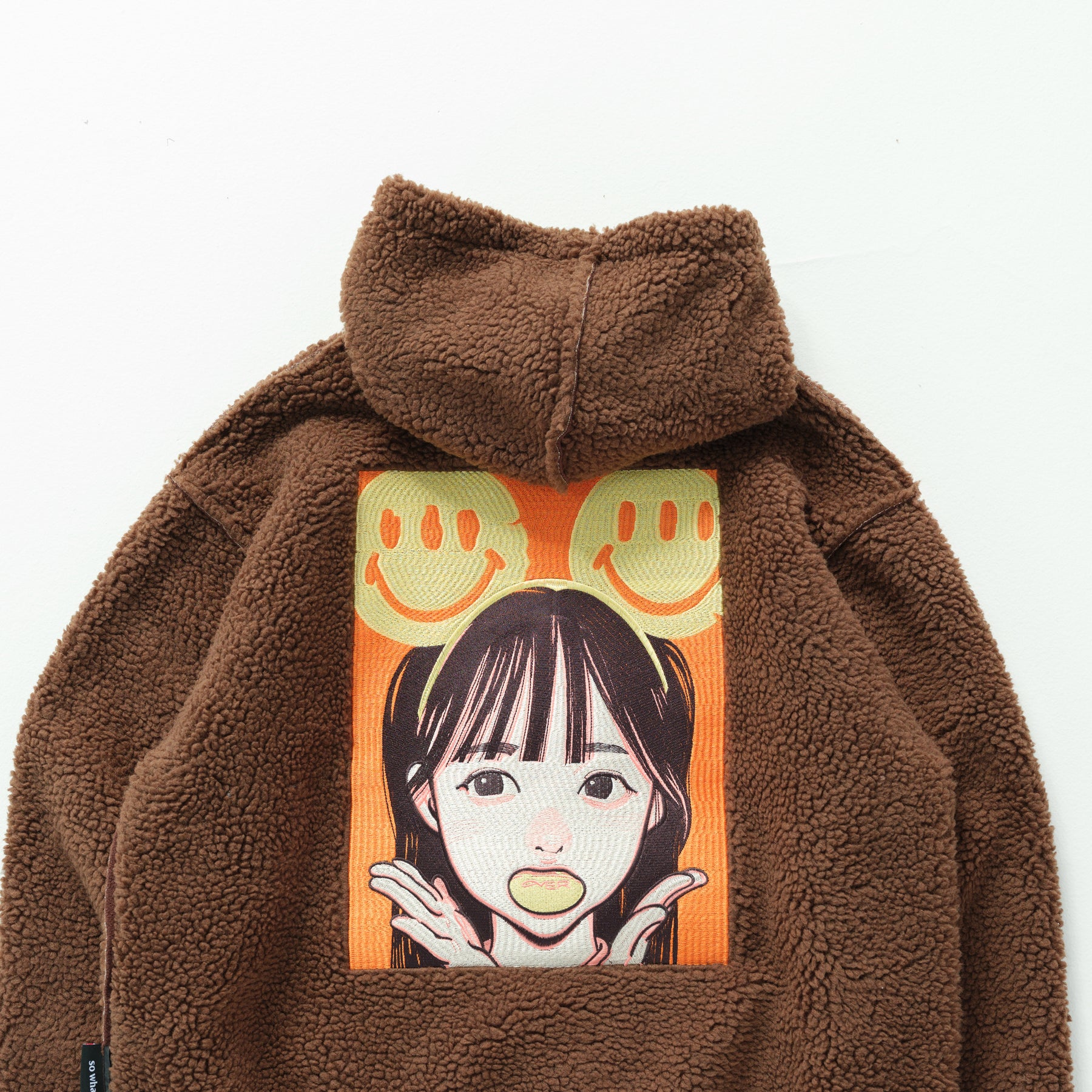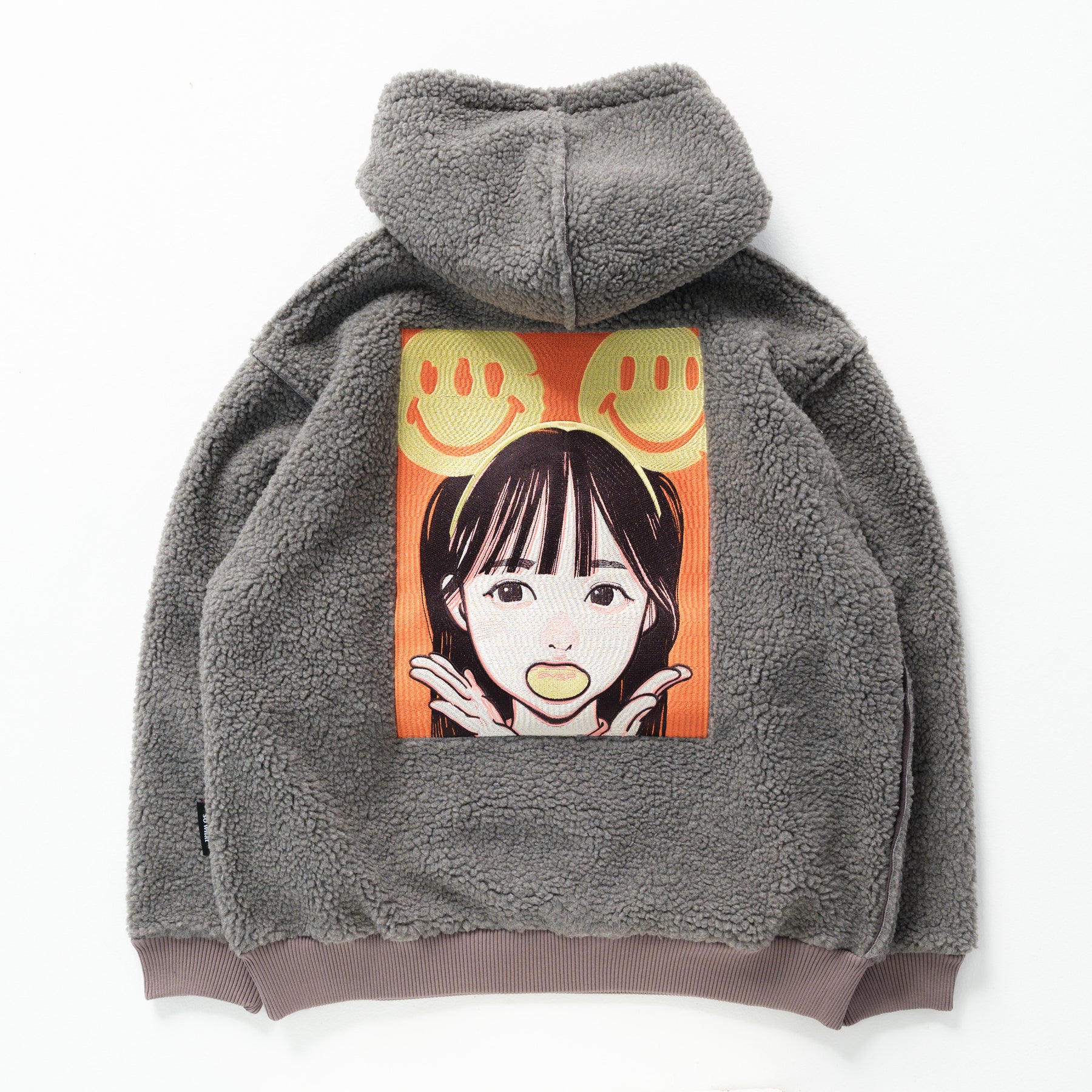 ボア生地の裏面にフリース生地をボンディング(接着)させたover printオリジナル生地を採用した、防寒性に優れた1枚