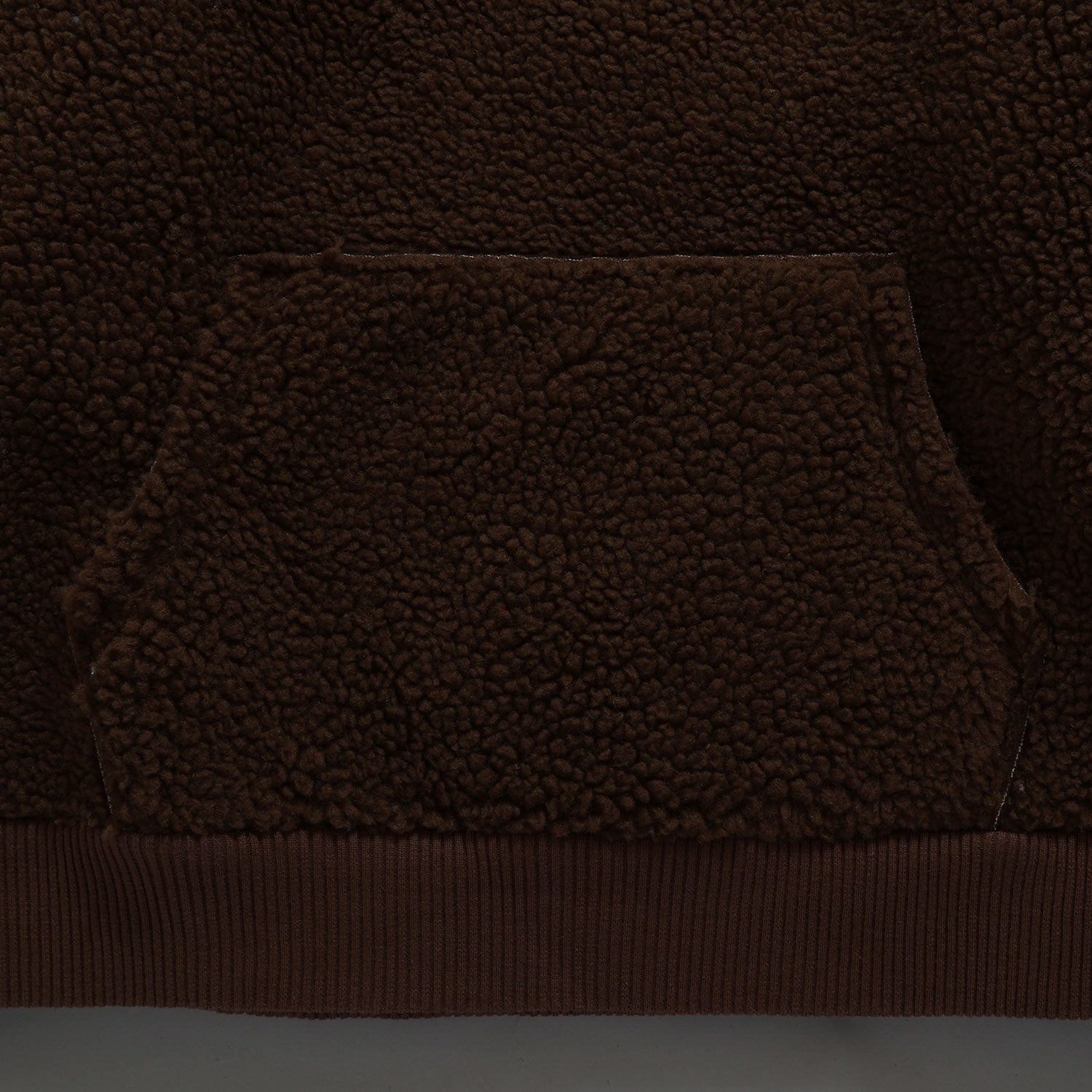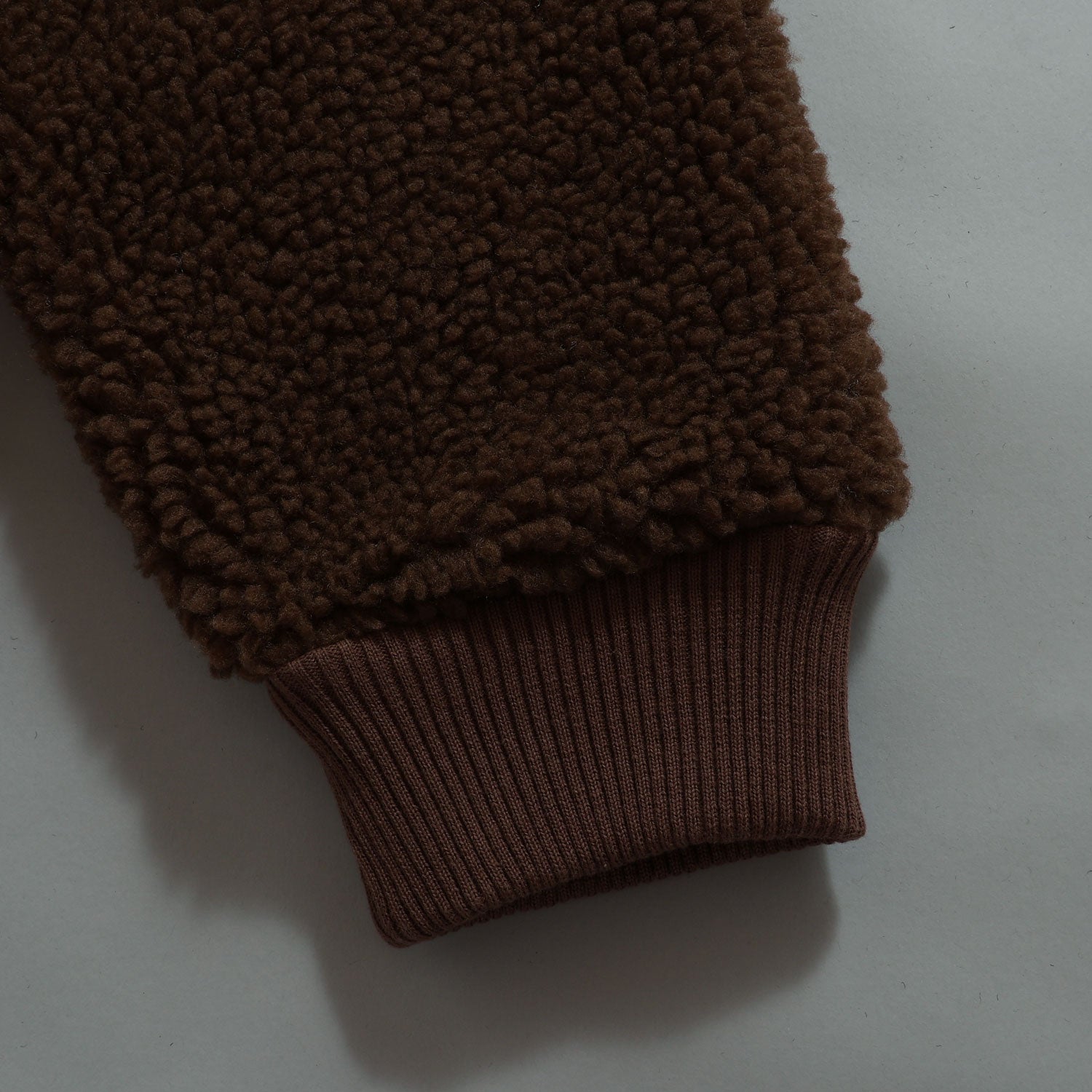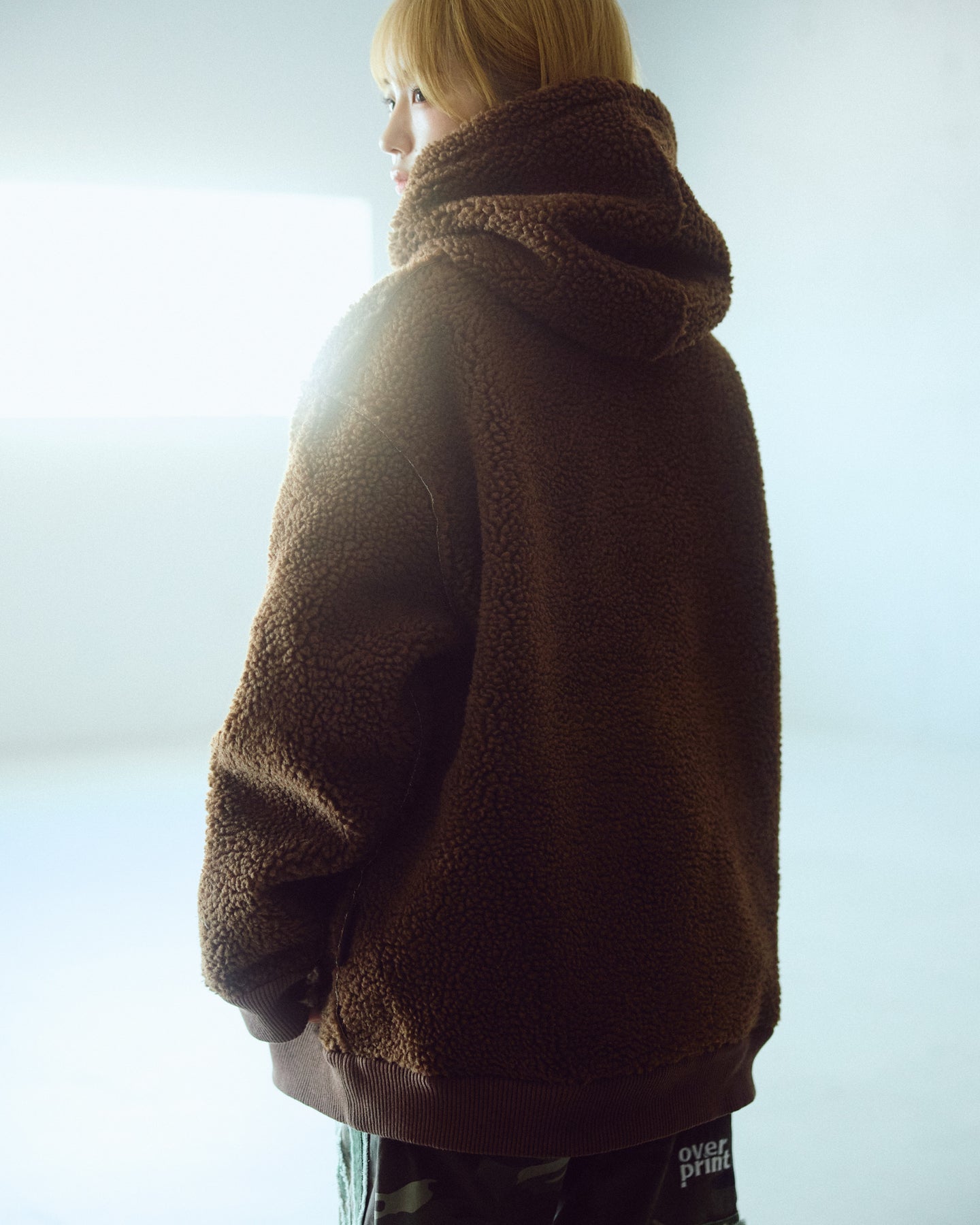 ボア生地の裏面にフリース生地をボンディング(接着)させたover printオリジナル生地を採用した、防寒性に優れた1枚