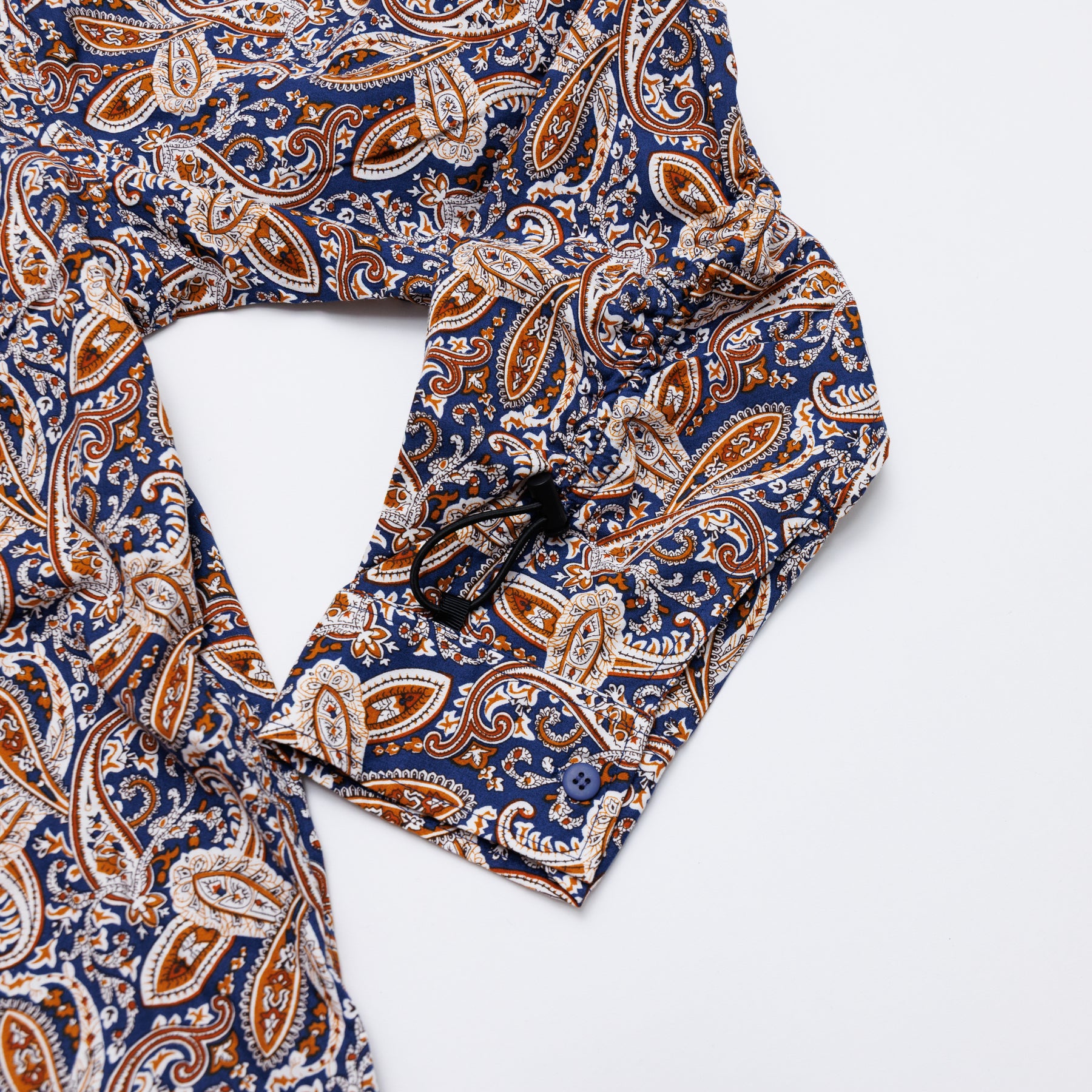 袖のドローコードで絞ればできる、袖周りの不自然なギャザーが今回最大のデザインポイントです